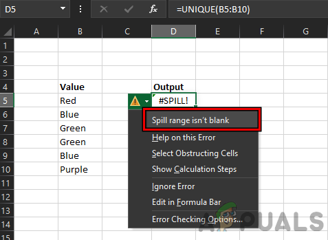 Check and Identify the Reason for the #Spill Error in Excel