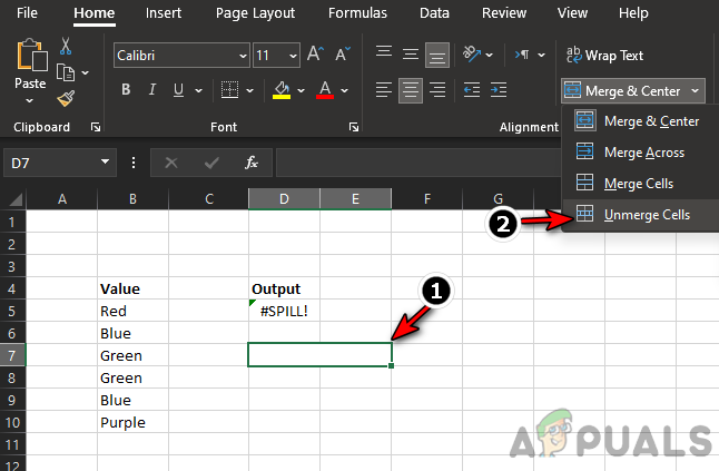 - Now try to find merged cells and once found, unmerge the cells to clear the #spill error.