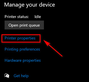 Manage the Printer settings - Once you’re inside the Settings screen of your printer, click on the Printer Properties hyperlink from the list of available options.