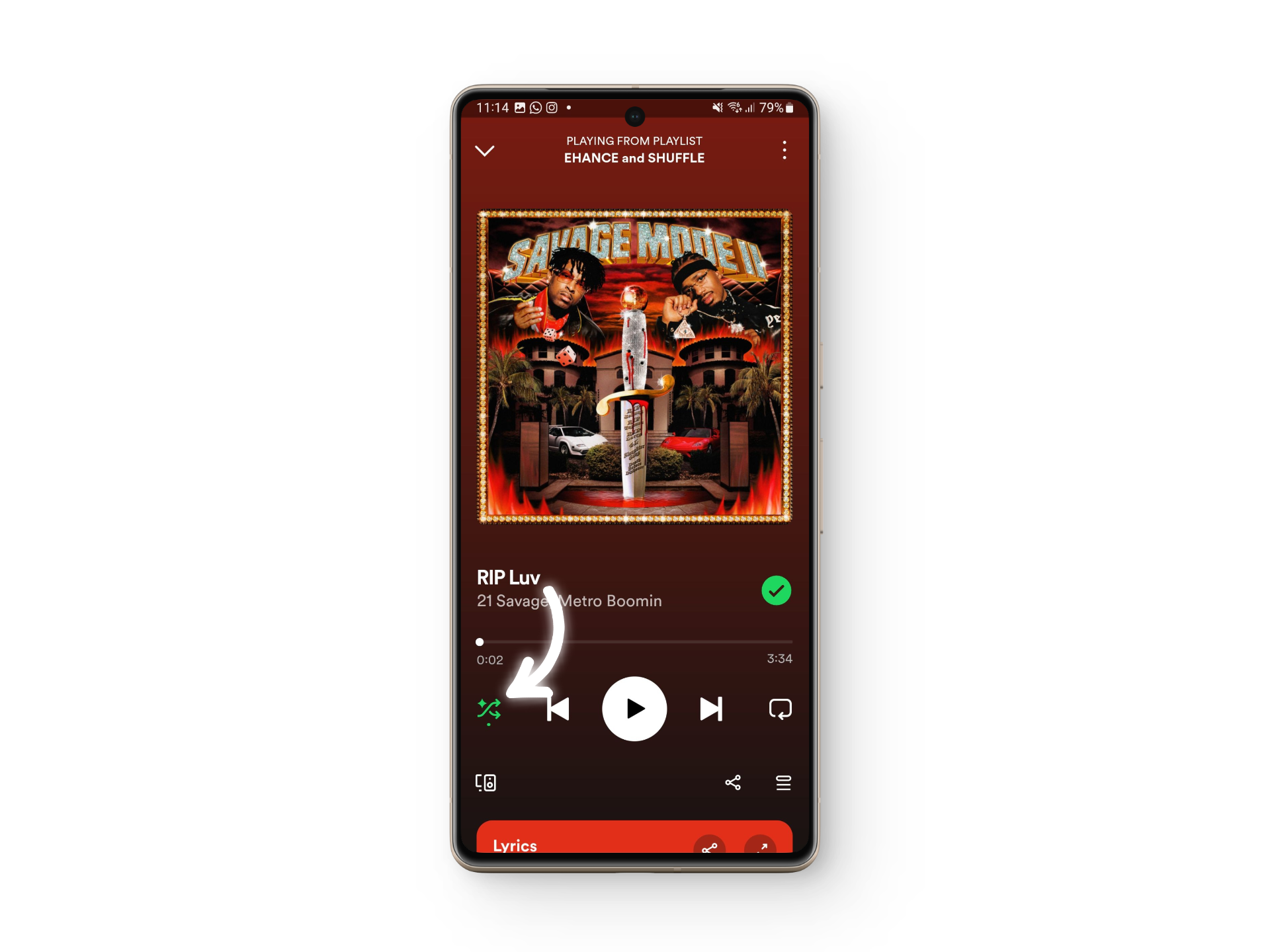 Alternatively, enable Smart Shuffle from the song preview tab where you’ll find the same double-arrowed option. Tap it twice to activate Smart Shuffle.