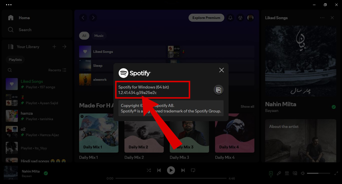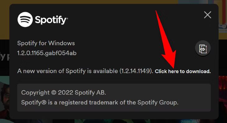 Click on About Spotify - A new window will pop up, displaying the current version of Spotify. If an update is available, you should see a prompt to update Spotify.