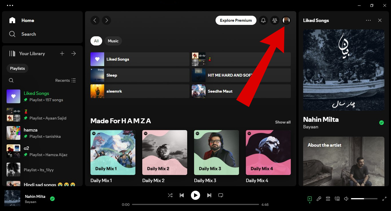 - Launch the Spotify app and click on your profile in the top right corner.