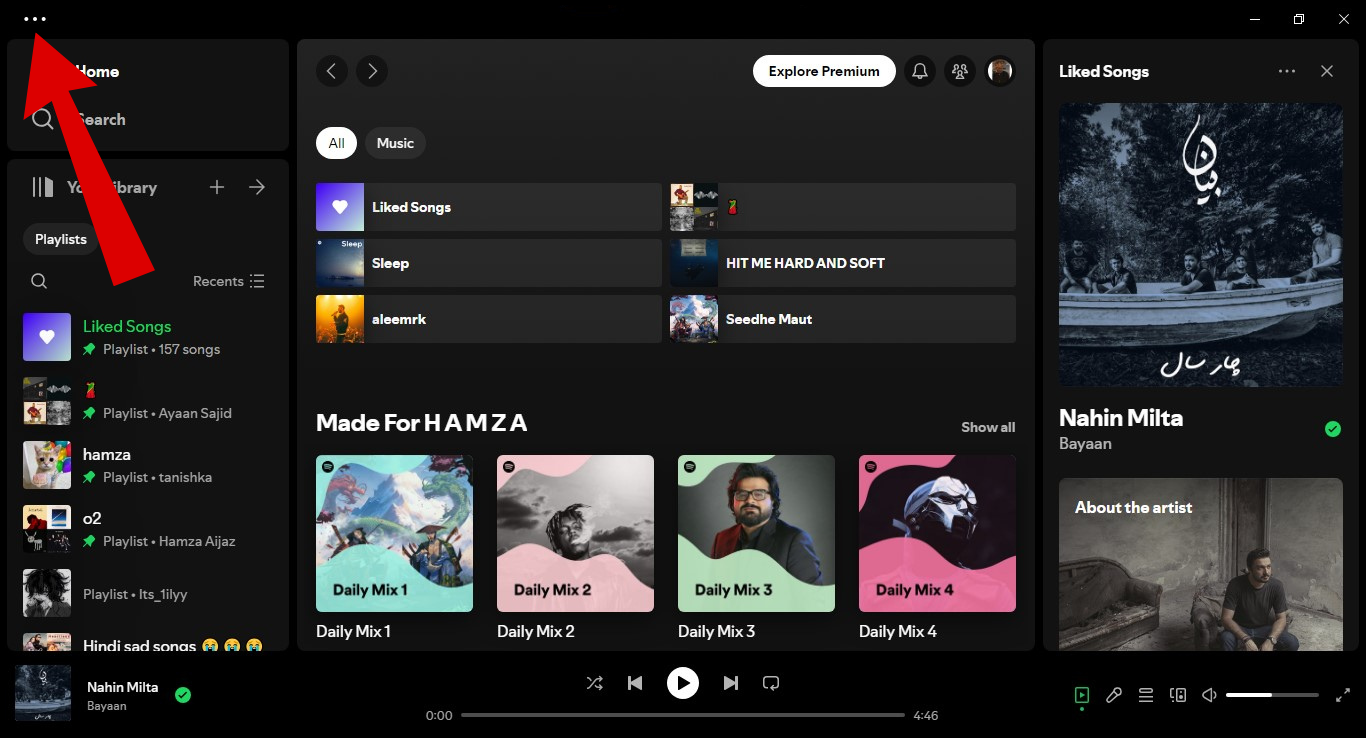 Open Spotify - Click on the three-dot menu in the top-left corner of the Spotify window.