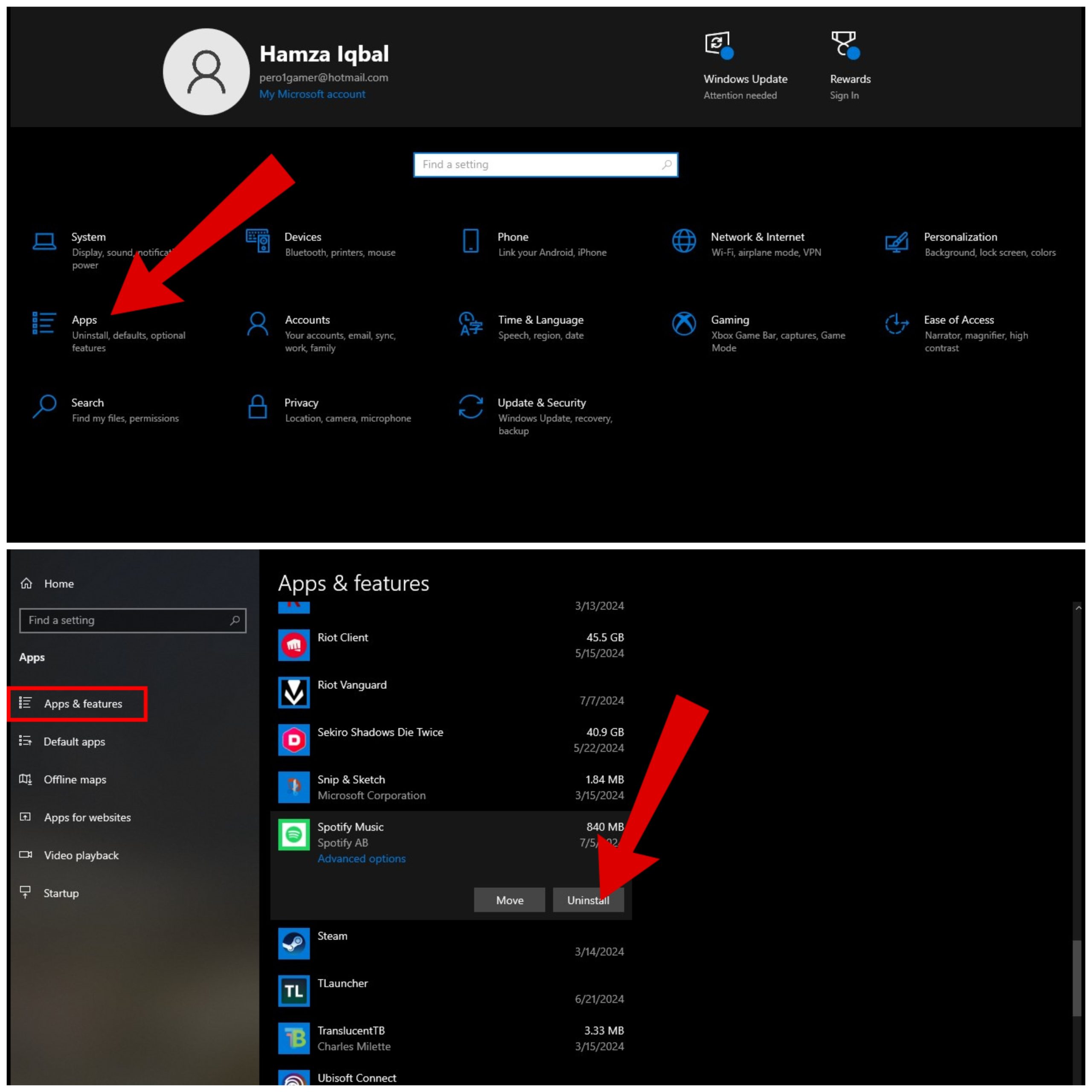 You can also manually update Spotify through their website. First, uninstall Spotify by navigating to “Settings” and then “Apps“. Scroll down to find Spotify in the list of apps and click “Uninstall“. After the uninstallation is complete, visit the official Spotify website, download the latest version of the app, and install it on your system.