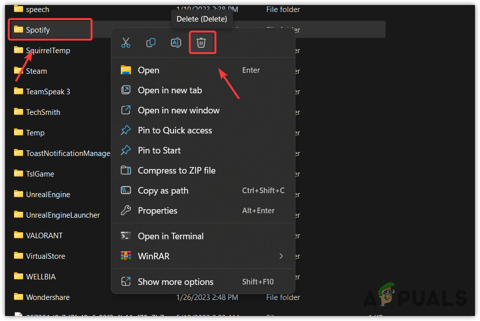 - Delete the Spotify folder and open Settings by pressing Win + I shortcut.