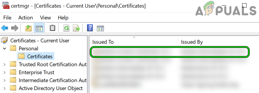 Open Windows Certificate Manager - Then head to the Personal>> Certificates tab and check if the problematic certificate is present there. If the certificate issuer requires a certificate in another tab, then make sure the certificate is present in the relevant tab.
