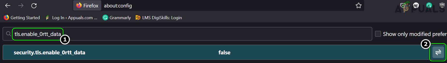 - Now click on the toggle button to set the above-mentioned setting to False and relaunch the Firefox browser to check if the SSL handshake failure issue is resolved.