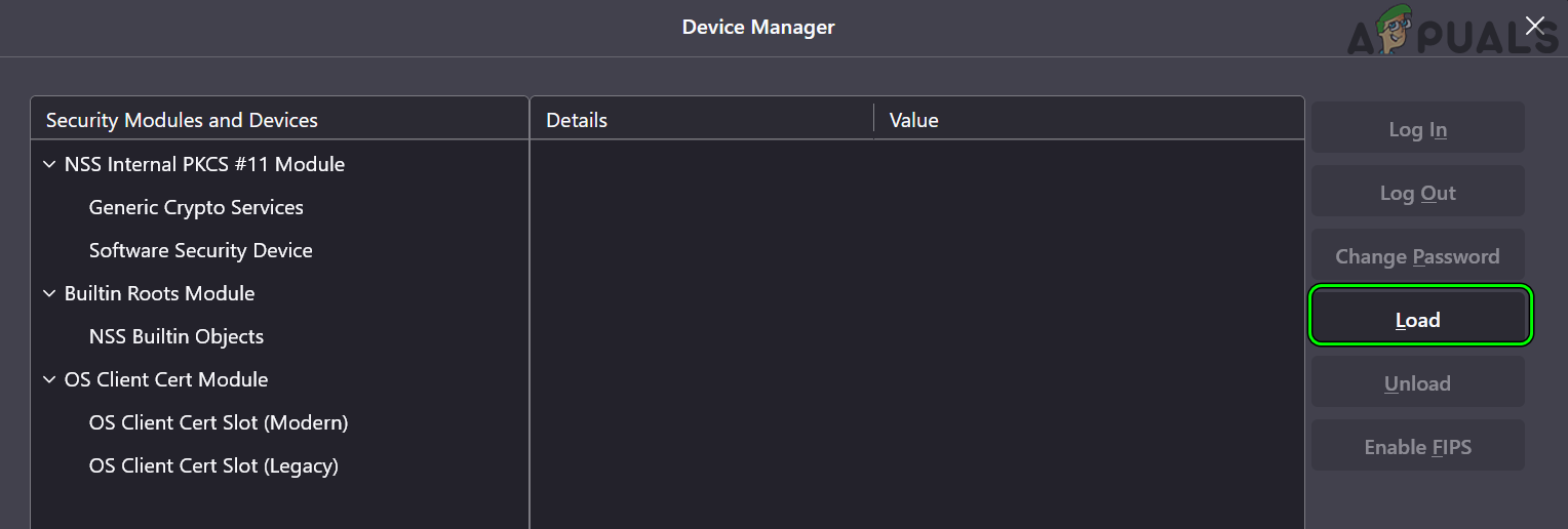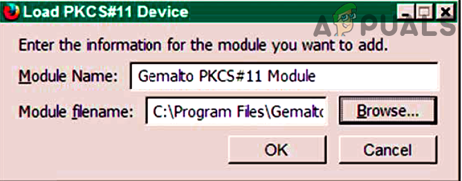 Open Security Devices in Firefox Certificates - Now click on Load and in the Module Name, type: