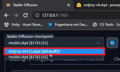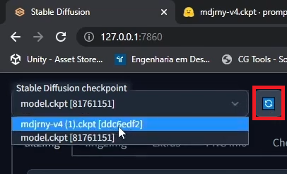 - Click Refresh or Reload Checkpoints to reload model files.