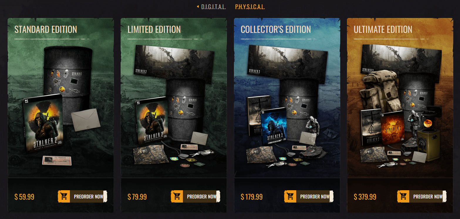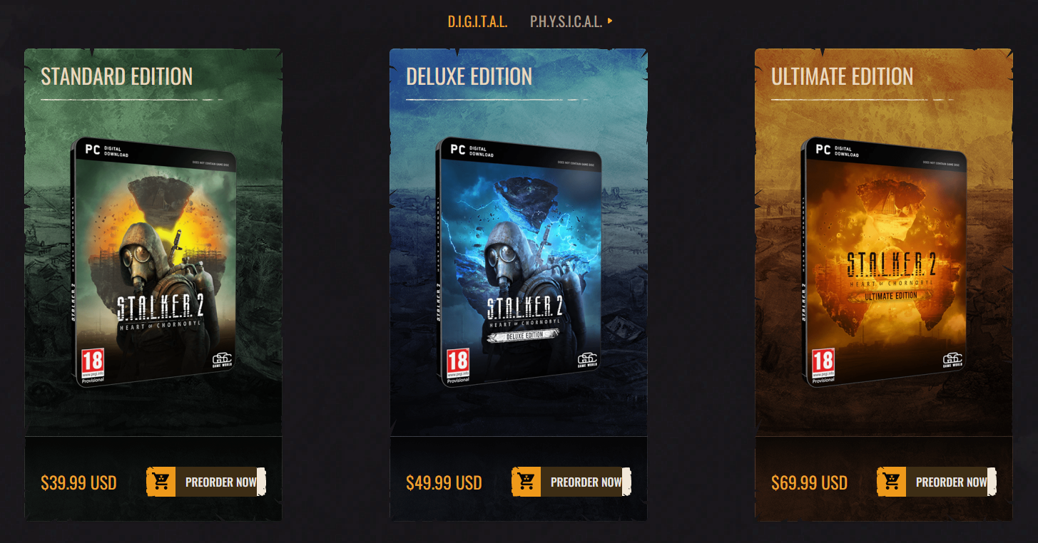 Pre-orders for S.T.A.L.K.E.R. 2: Heart of Chornobyl are now available on all supported platforms, and you have the following options to choose from: