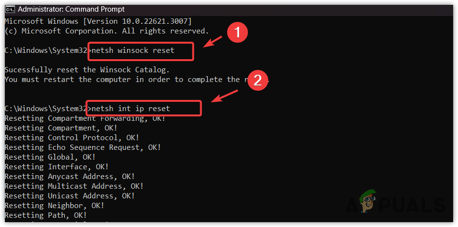 Problems with TCP/IP (Transmission Control Protocol/Internet Protocol), which facilitates communication over the network, may be responsible for the issue. Resetting TCP/IP is advised in such instances.