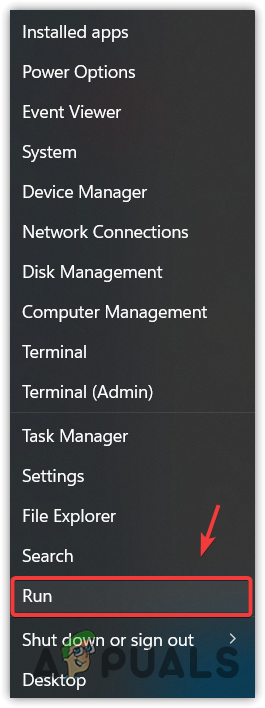 - Right-click the Start Menu and select Run.