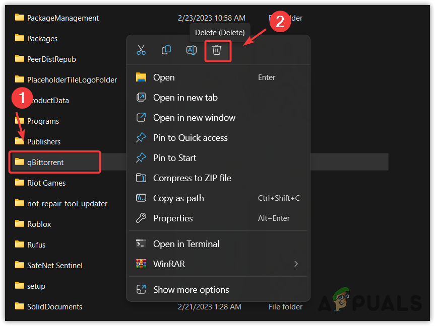 The qBittorrent folder in Appdata, which stores user settings and cache files, can sometimes become corrupted, resulting in various error messages. Hence, deleting the cache data from the local Appdata folder is recommended.
