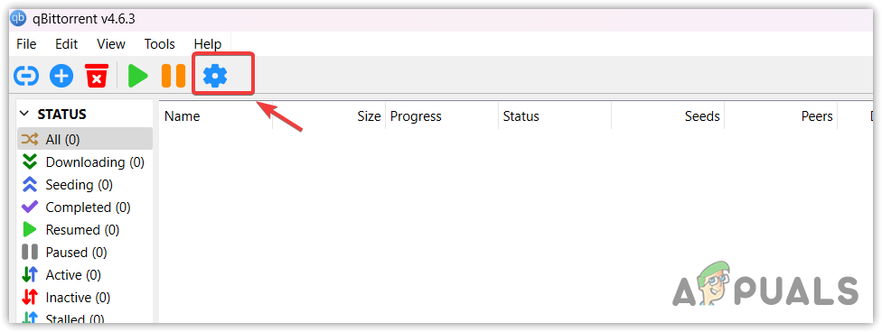 - Navigate to qBittorrent Settings by clicking the Gear icon at the top.