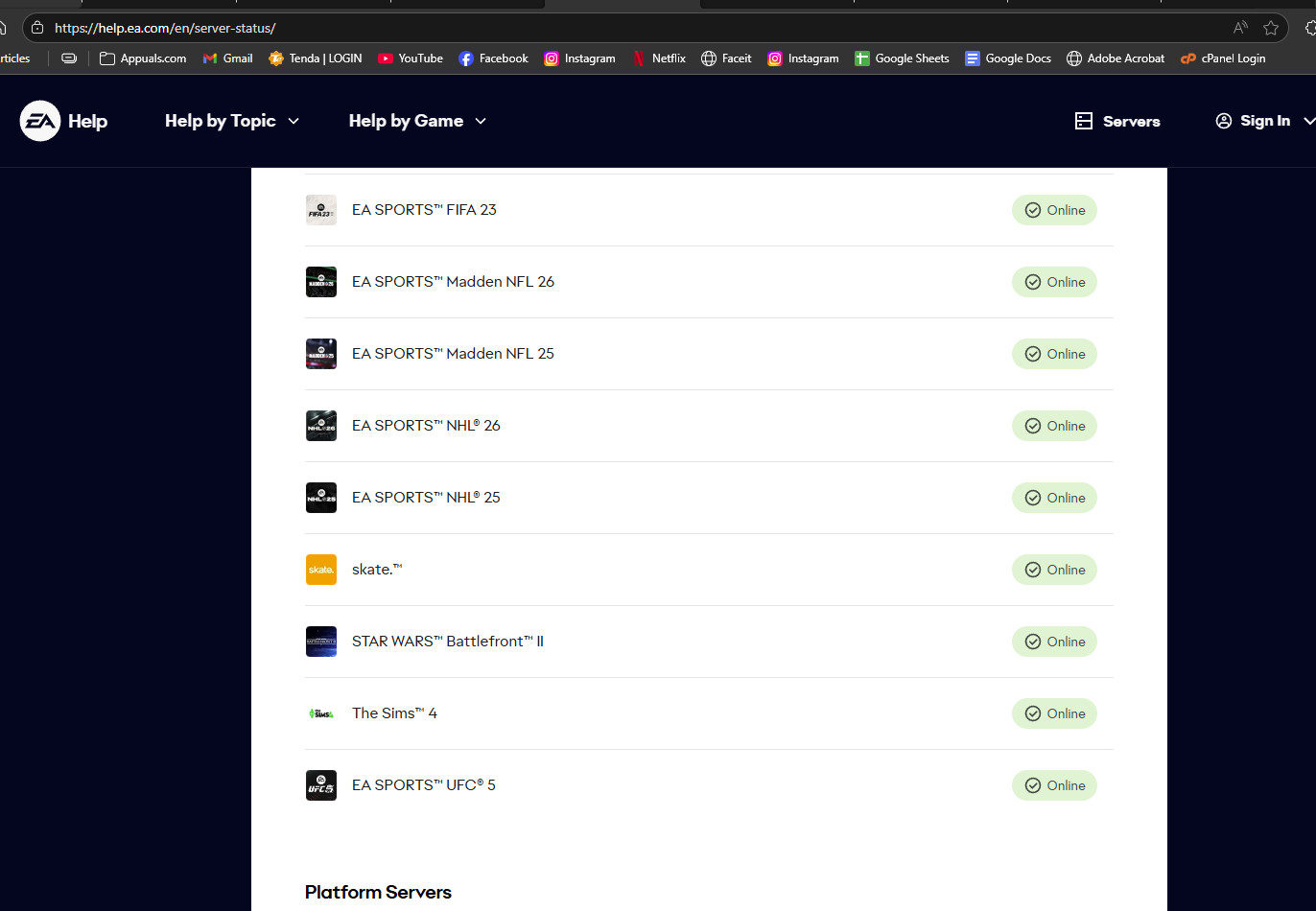 Before trying any fixes, it’s important to check the server status. Sometimes, the issue lies on EA’s end, and the servers might be temporarily down. Checking the server status will help you determine whether the problem is from your side or the server side.