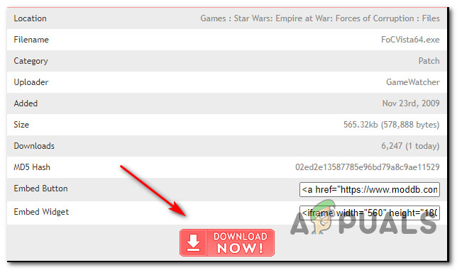 - Open your default browser and navigate to the download page of the RAM fix for Empire at War: Forces of Corruption.