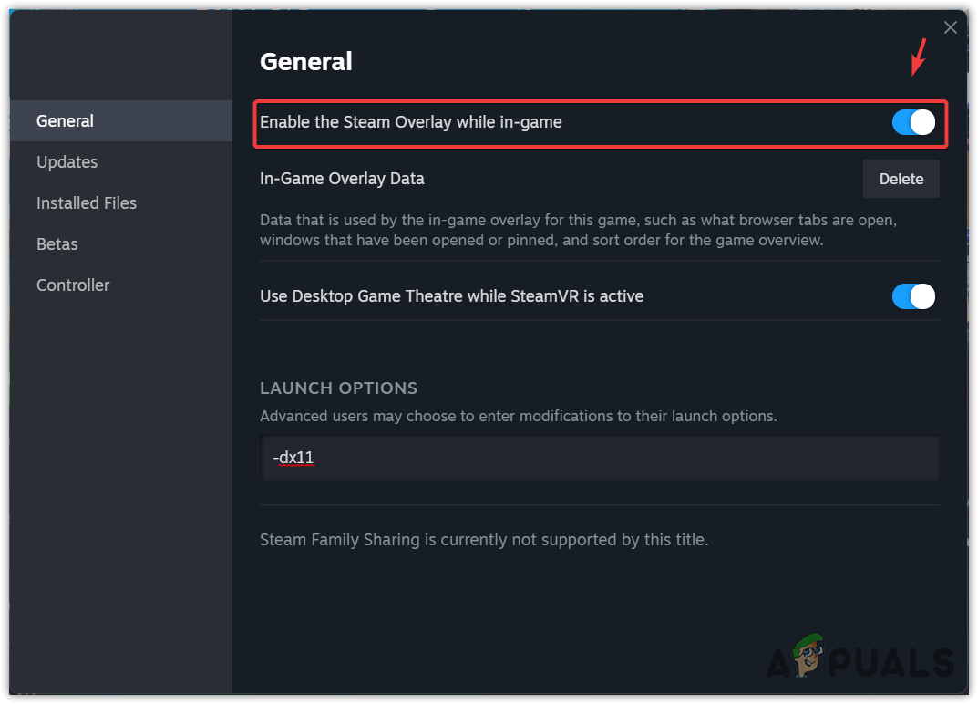 - You will see a button: Enable the Steam Overlay while in-game. Toggle it to disable.