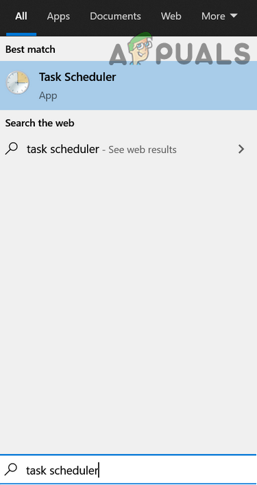 - Press the Windows key to launch Windows Menu and type Task Scheduler. Then, in the search results, choose Task Scheduler.