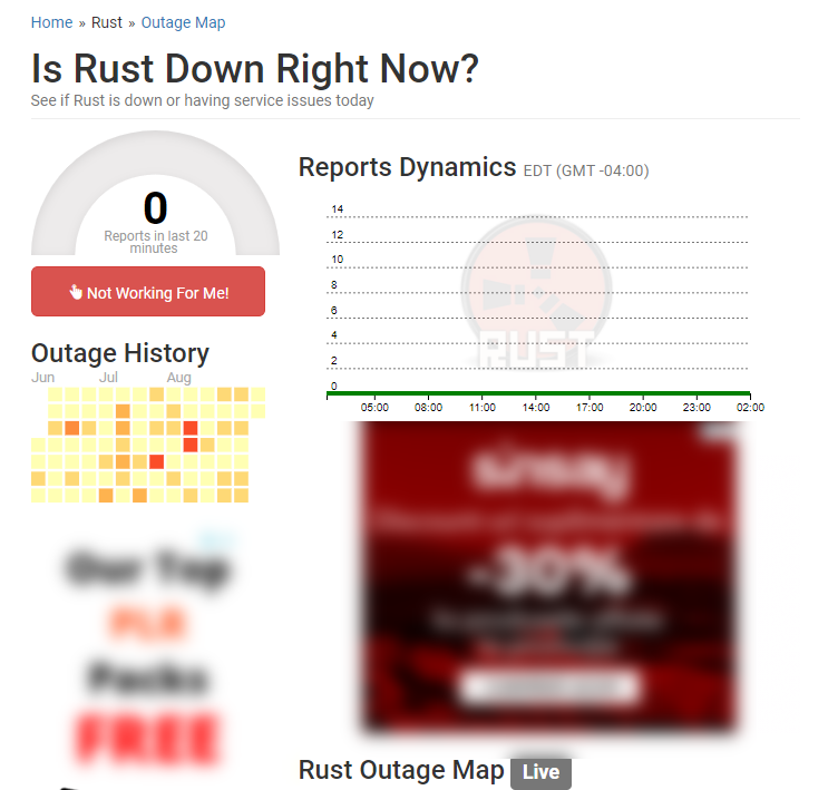 If Steam’s status checks out, proceed to inspect Rust’s megaservers for issues using platforms such as DownDetector or Outage.Report.