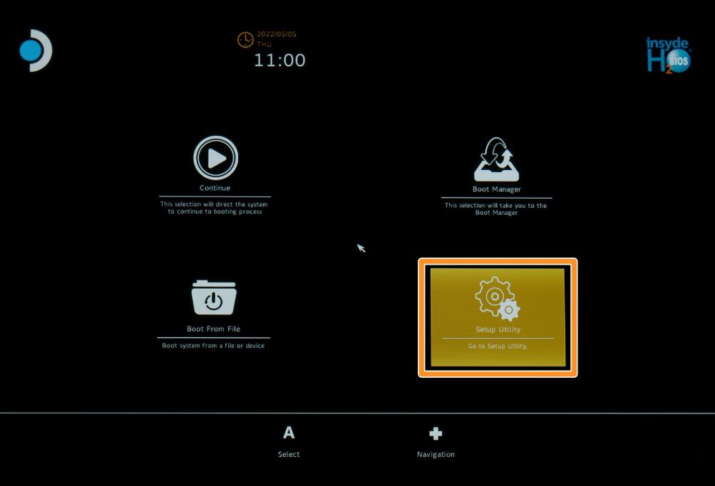 - Navigate to Setup Utility using the D-pad and select it with the A button.