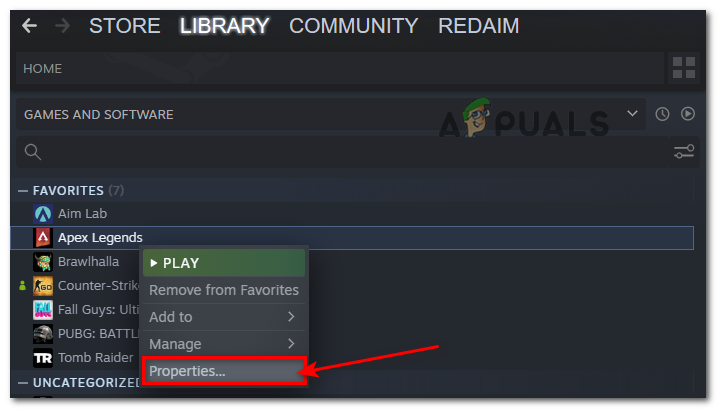 - Go to your Library then right-click on the game you are having a problem with and go to properties