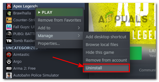- First, you have to uninstall the game Go to the Steam library and right-click on the game you want to uninstall