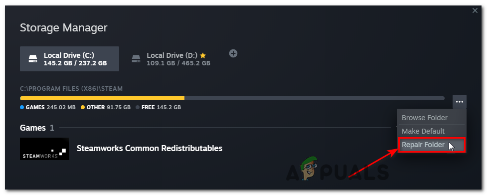 Steam will check the library folder you’re willing to repair and make sure that there are no corrupted files. Then it will repair the files if possible which are corrupted.