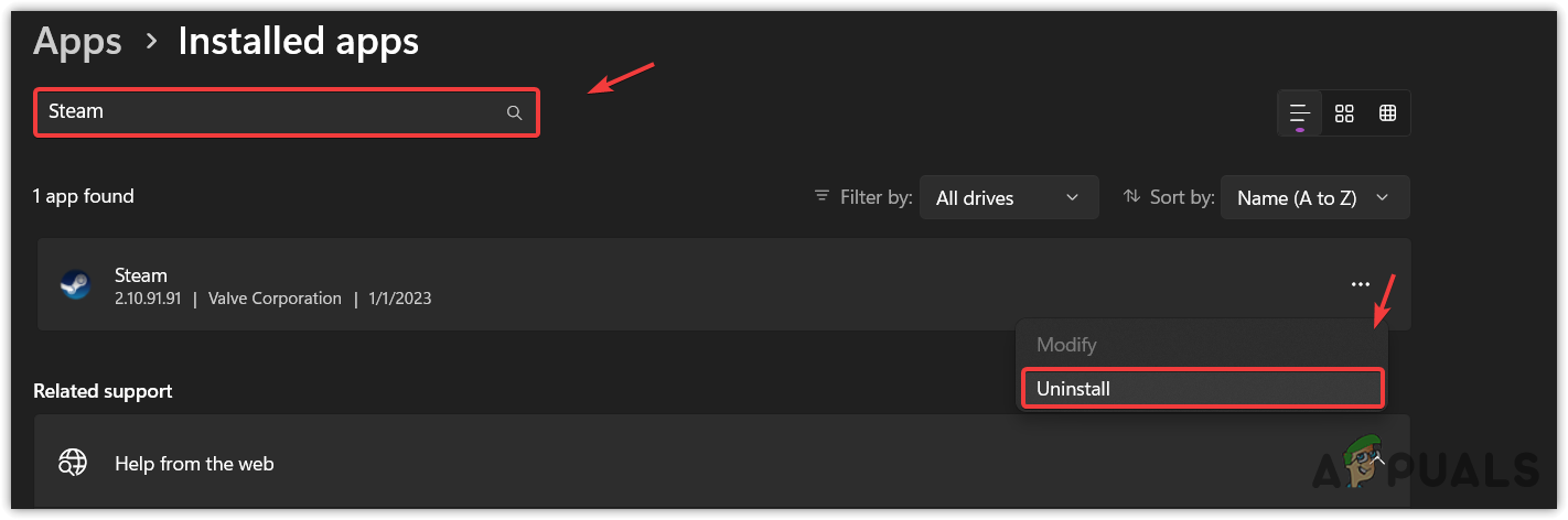 If you are still facing the error, finally, you can try reinstalling Steam. However, you can wait for some time, as this error might be occurring due to a problem from the server side. Therefore, you can wait for like 1 to 2 hours to ensure whether the problem is from the server side or not.