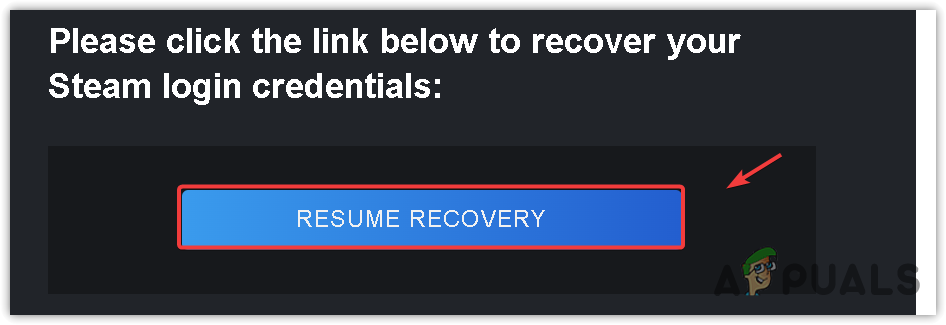 - Then, open the Steam verification email and click Resume Recovery.