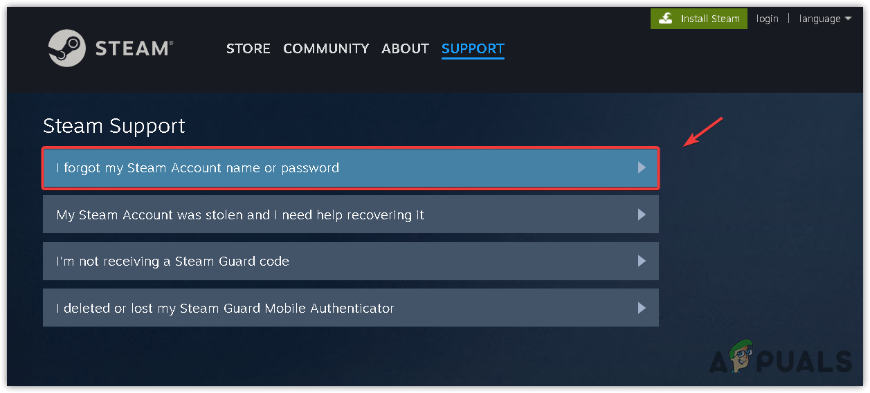 - Choose “I forgot my Steam Account name or password.”