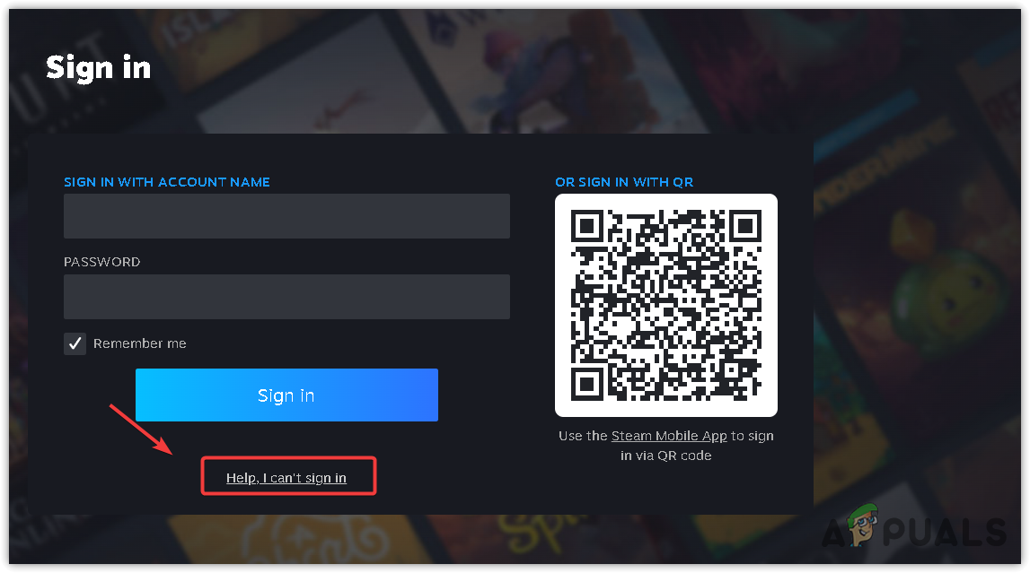 - Visit the Steam login page and click on “Help, I can’t sign in.”