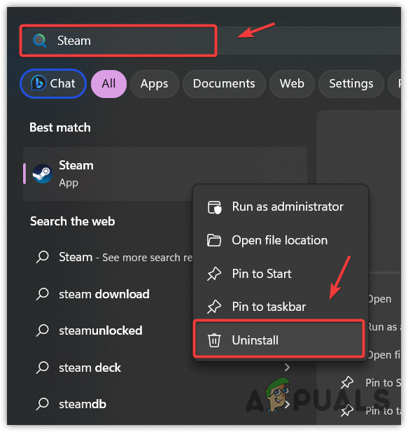 - Click Uninstall and follow the on-screen instructions to uninstall the Steam.