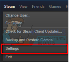 - Once in the client, click on Steam present at the top left corner of the screen. From the drop down box, click on Settings.