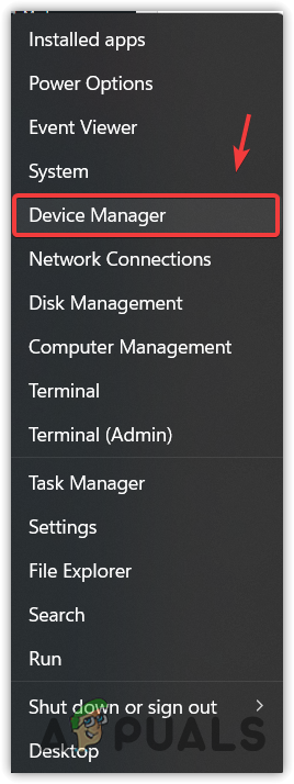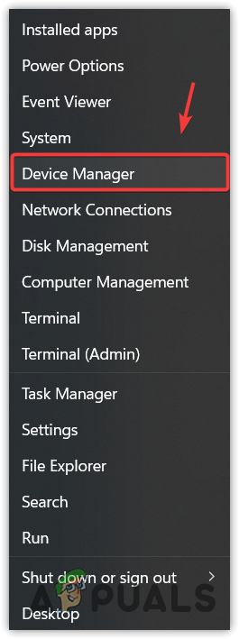 - Right-click the Start Menu and select Device Manager to open it.