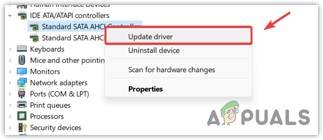 - Right-click the controller and select Update Driver.