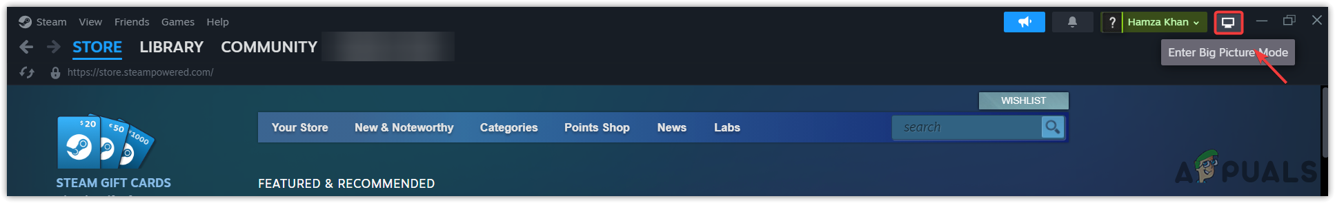 - Open Steam, and click the TV icon to enter the big picture mode.