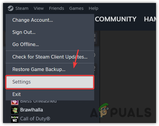 - Click on Steam from the top and select Settings.
