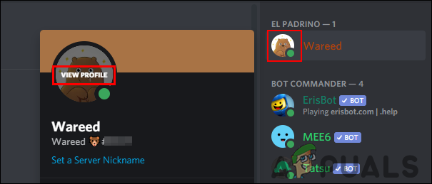 Note: You can also simply open it in your browser. - Now move to the server or the friend list and click on their profile icon. Now click on the View Profile that will show over the profile picture.