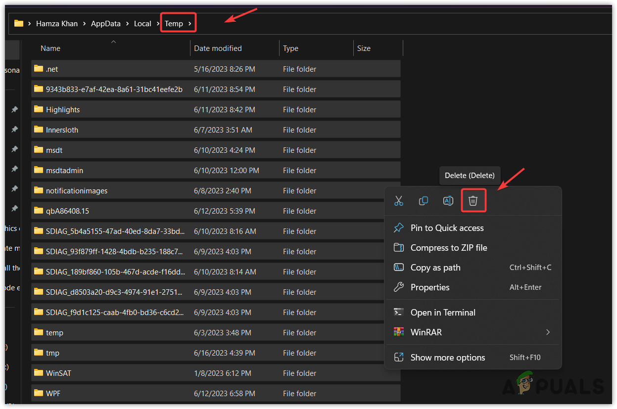 Since temporary files are not intended to complete long-term tasks, we can safely try deleting them to ensure whether they are encountering the error or not. To clear the temporary files, follow the steps: