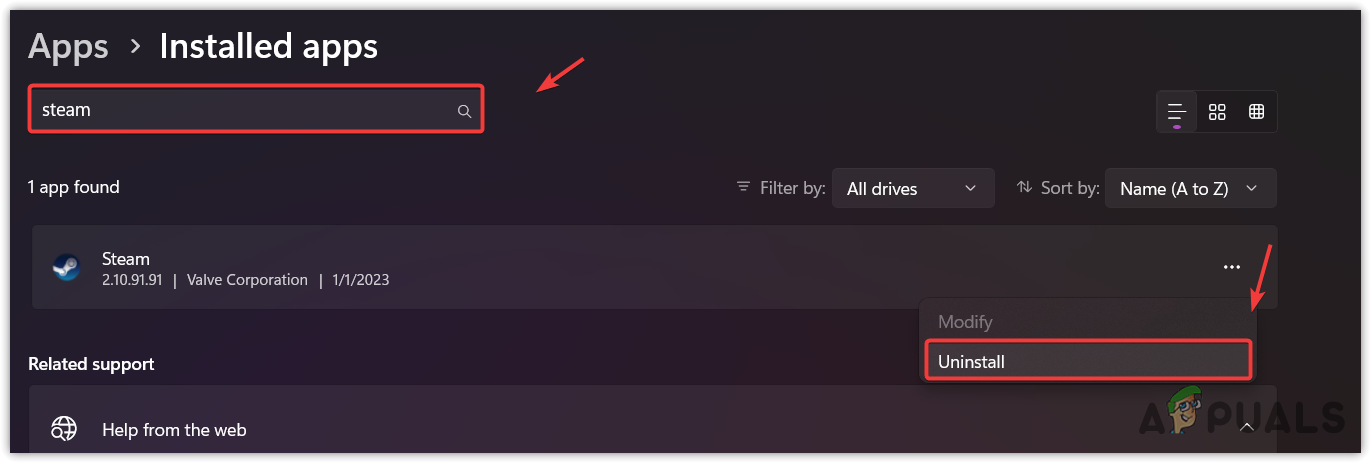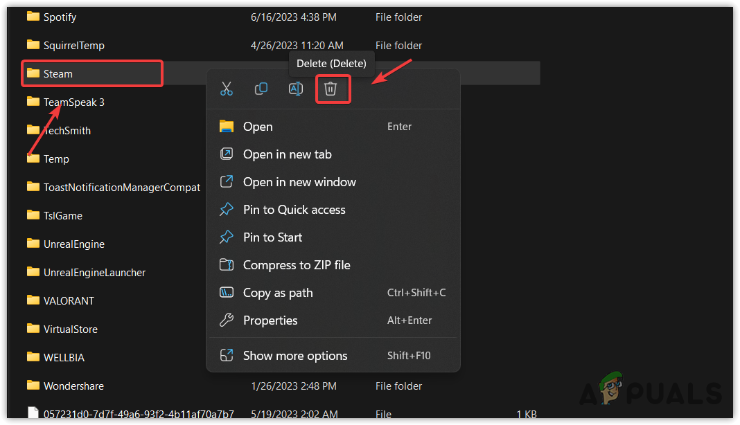 Reinstalling Steam will remove all the corrupted files, which might fix this error. To do so, follow the steps: