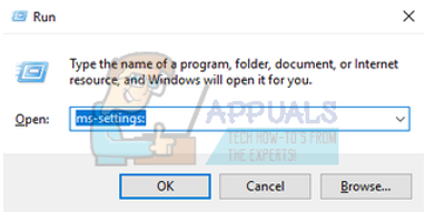 - Press Windows + R button to launch the Run application. In the dialogue box type “ms-settings:”. This will launch the Settings applications.