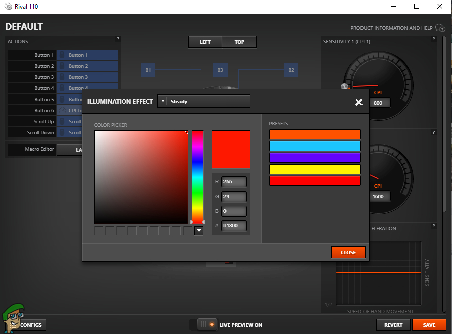 Even though the Rival 110 is pretty much plug-and-play, you’ll definitely appreciate the customizations provided by the SteelSeries Engine 3 Software. The software menus are very well designed and easy to navigate. One thing I liked is that all of the main settings are in one panel. On the left side, we have a menu to reassign any of the six mouse buttons. You can also invert the scrolling actions for the scroll wheel.