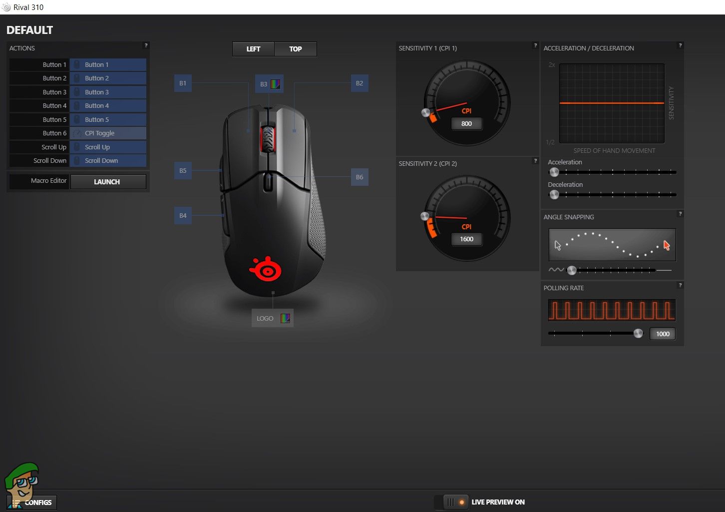 That is exactly why we love the SteelSeries Engine 3. It represents a “set it and forget it” kind of mentality. Once you’ve fine-tuned this mouse to your liking, you don’t need to hop into the software every now and then. Things like button remapping are simple and easy to understand. Adjusting the CPI can be done in increments of 100. You can only set two levels of CPI for this mouse, which is a bit disappointing.