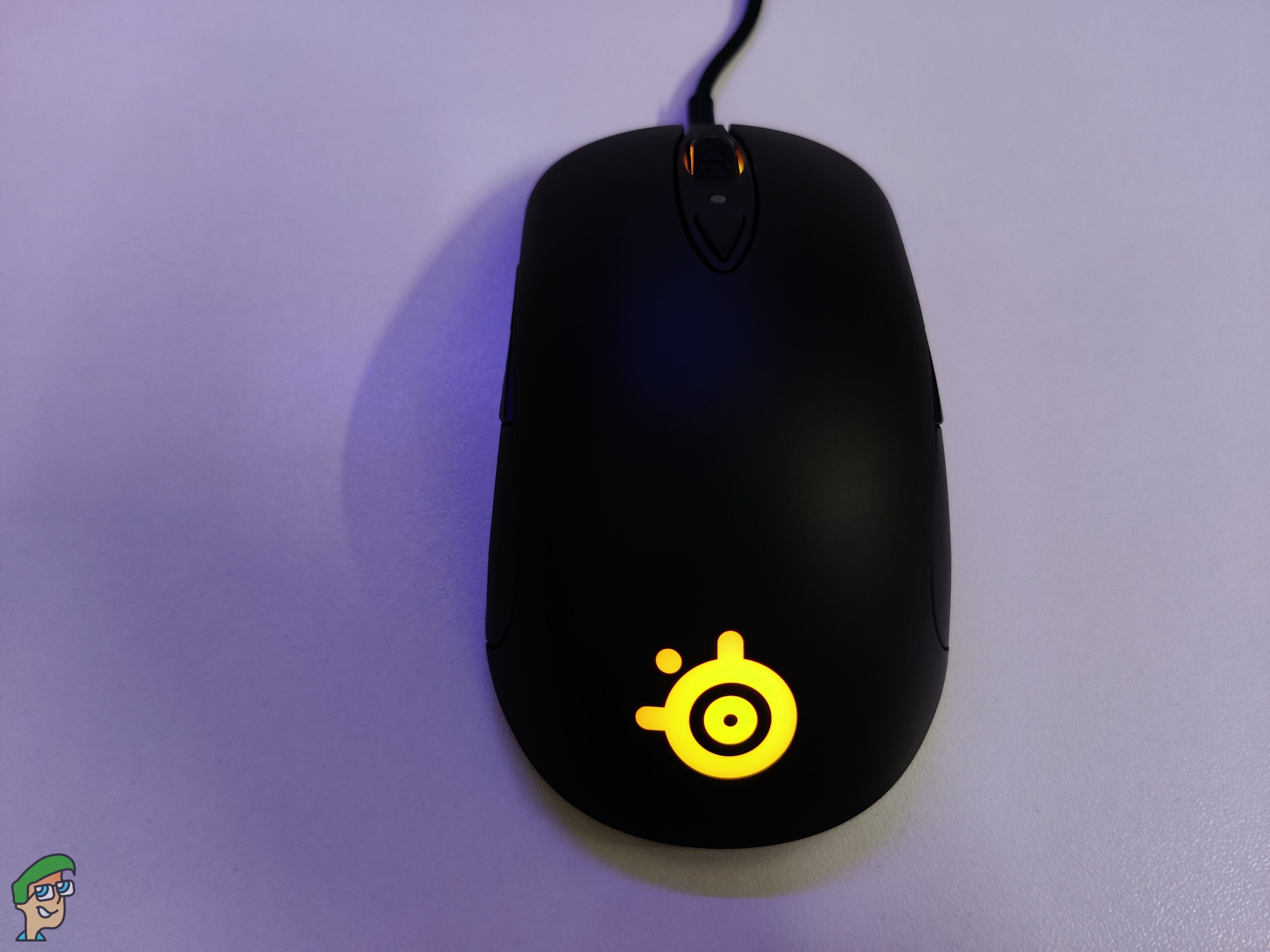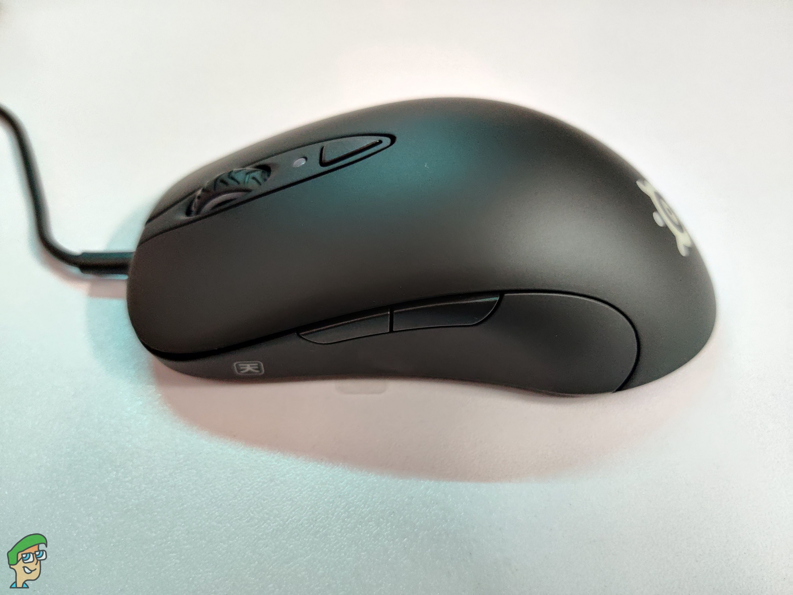The body is all-black which is only separated by the RGB illuminated SteelSeries logo and the RGB scroll wheel. On the upper left side of the mouse, we can see a small Japanese and Chinese character, which translates to “heaven”. The best part about this mouse is the soft-touch matte finish.