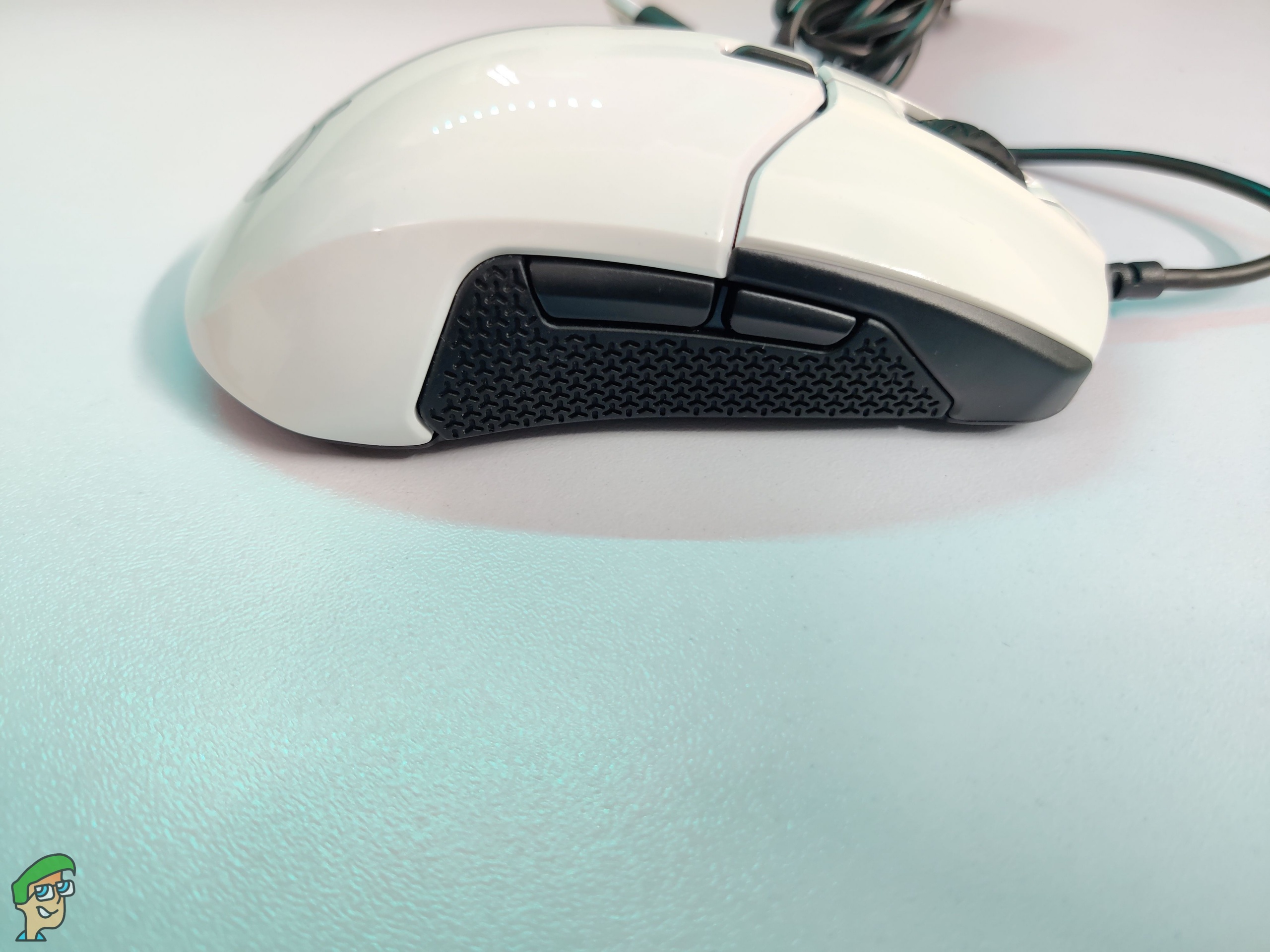There is the classic RGB SteelSeries logo at the bottom rear of the mouse. The sides have textured silicone grips, which look unique. This gives the mouse an understated minimalistic look. Apart from that, the glossy plastic texture feels great and is much better than anything you’ll find on a cheaper mouse.