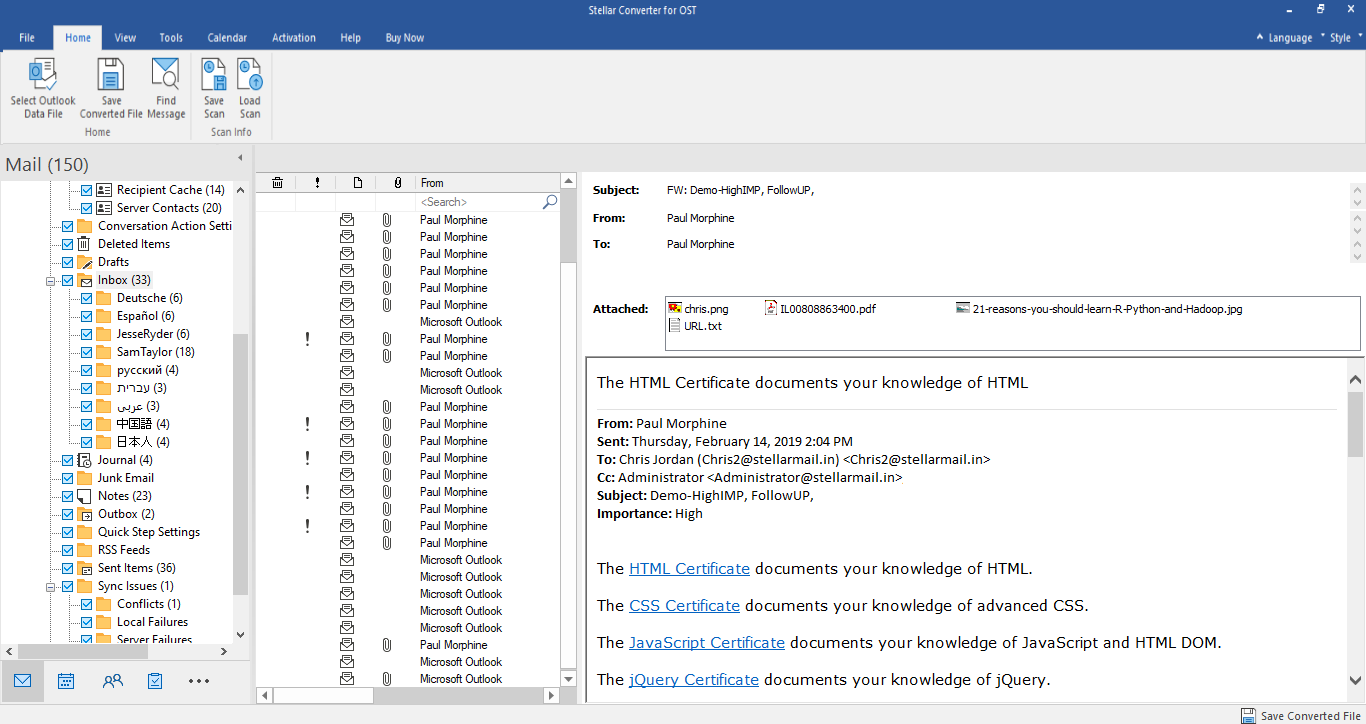 Once the scan completed, Stellar Converter for OST presented a full mailbox tree.