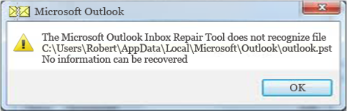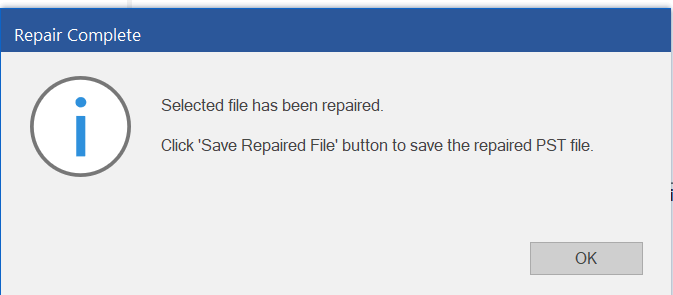 Before using Stellar Repair, I ran the ScanPST tool on the corrupted file.