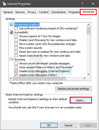 Resetting the Internet Explorer’s settings have worked for a few users as well. Here are the steps for resetting the Internet Explorer