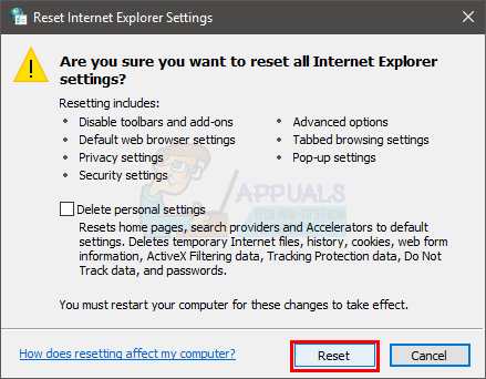 - Click Reset… This should be in Reset Internet Explorer’s Settings section