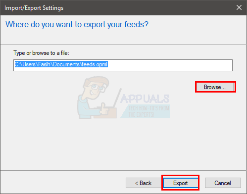 - Click Browse and navigate to the location where you want to export the file. Export it to somewhere like Desktop where you can easily access it again since we will have to use these after a few steps.